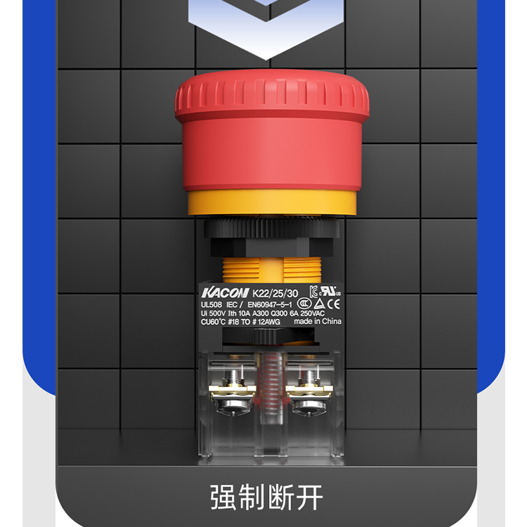 此外,凱昆K22系列急停按鈕開關(guān)的結(jié)構(gòu)設(shè)計具有較高的強度和穩(wěn)定性,