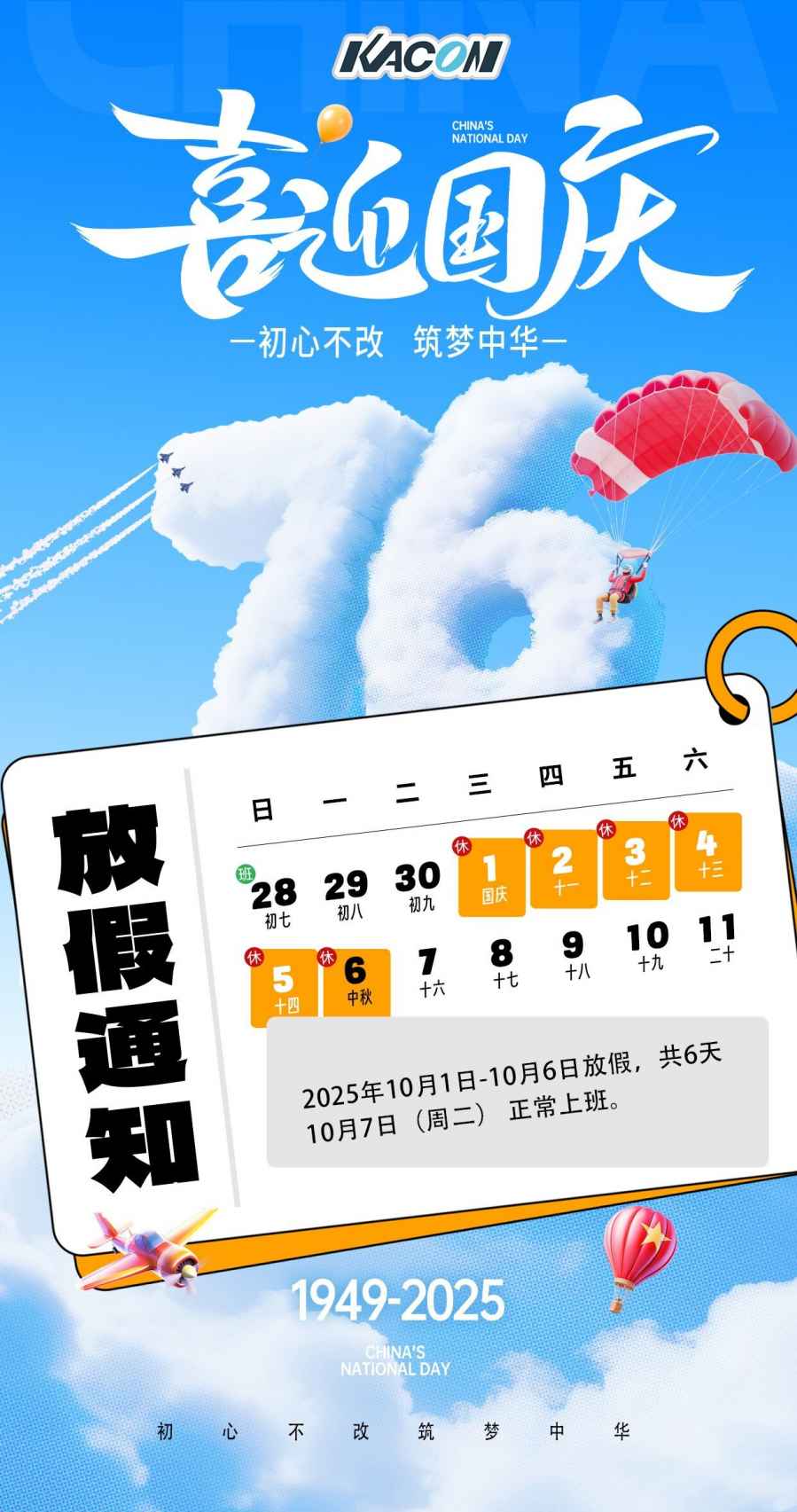 凱昆KACON2025年國(guó)慶節(jié)放假通知
