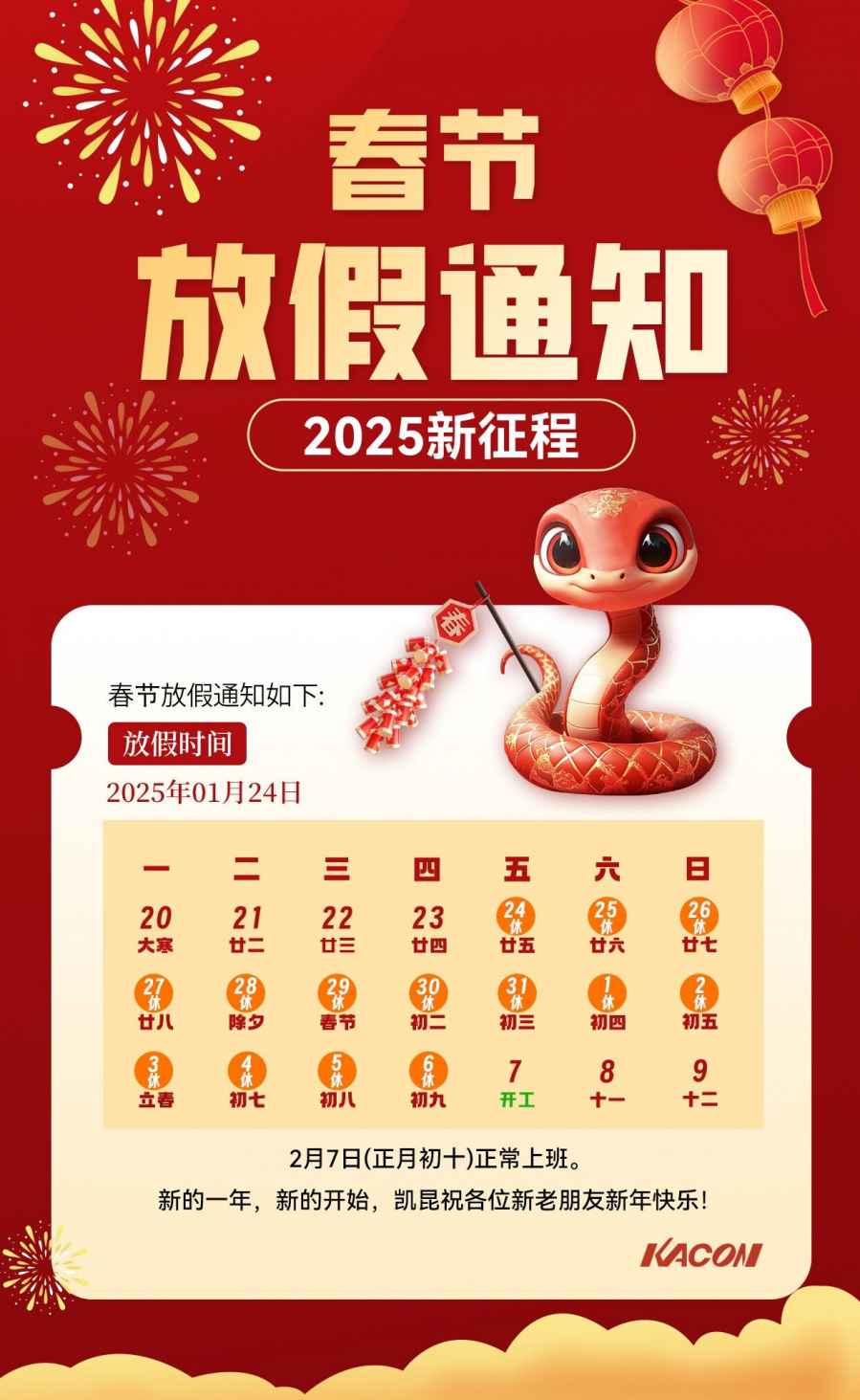 凱昆KACON2025年春節(jié)放假通知