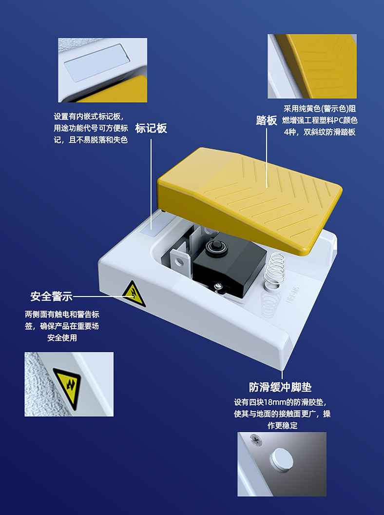 可以選擇底部帶有硅膠防滑墊的腳踏開關(guān)規(guī)避這個問題。