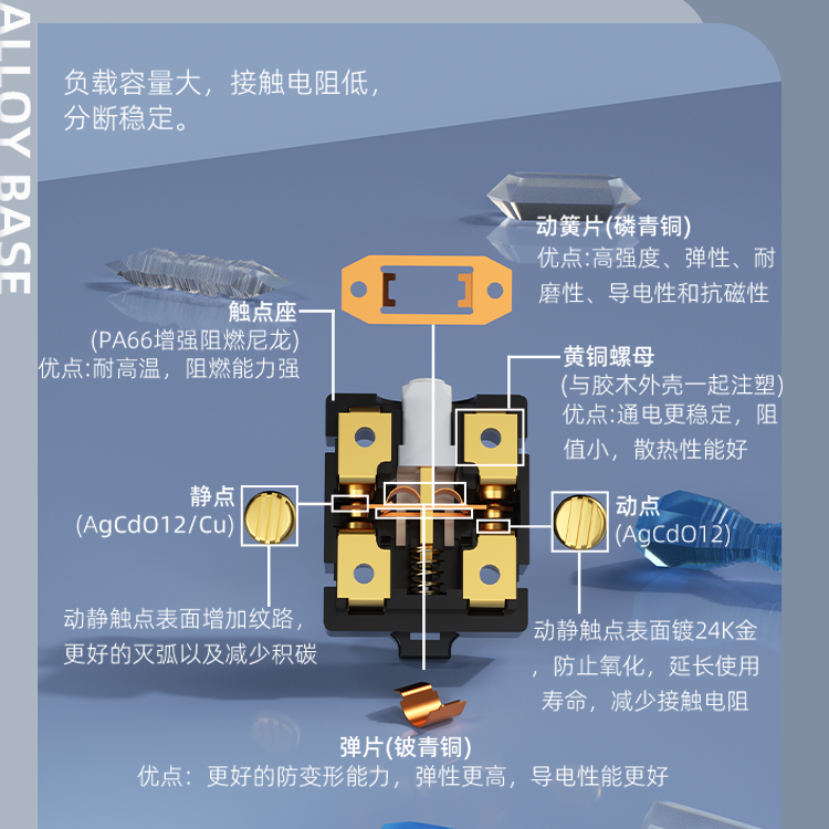 外殼,主要功能是保護內(nèi)部零件;最后是觸點系統(tǒng),負責(zé)控制電路通斷。
