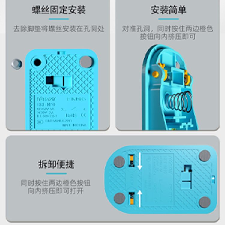 拆卸時(shí)無(wú)需費(fèi)力撬動(dòng),只需輕輕按壓底座與上蓋的銜接卡扣,即可快速分離;